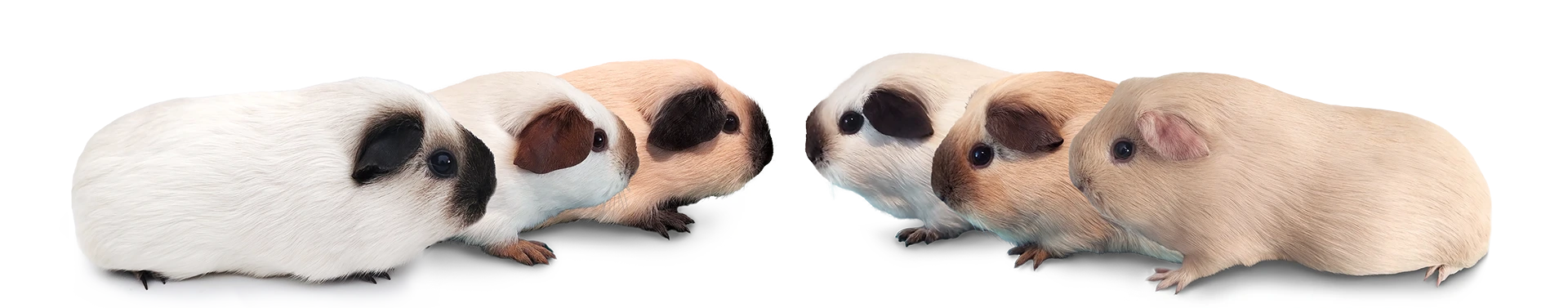 Een hobbyhouderij van gladhaar cavia’s in de kleuren crème en wit — effen of met een Californian uitmonstering in zwart of choco.